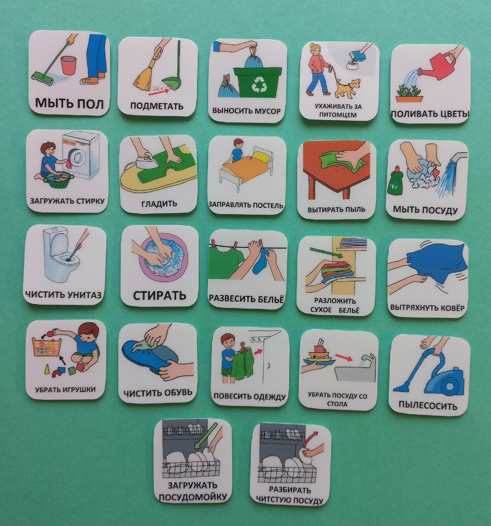 92 пластиковые карточки 4*4 см с изображением дел, за прогрессом которых можно следить.